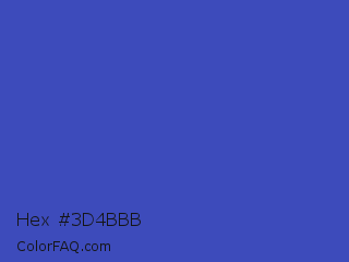 Hex #3d4bbb Color is a normal blue color and the nearest color is Violet Blue #324ab2. Hex code #3d4bbb and RGB value is rgb(61,75,187). In RGB color space, this color is composed of 24% red, 29% green, 73% blue, In CMYK color space, this color is composed of 67% cyan, 60% magenta, 0% yellow , 27% black , In HSL color space, this color has a hue angle of 233° , 51% saturation and 49% lightness.