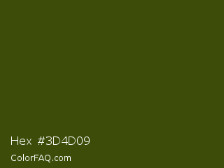 Hex #3d4d09 Color is a very dark lime color and the nearest color is Clover #384910. Hex code #3d4d09 and RGB value is rgb(61,77,9). In RGB color space, this color is composed of 24% red, 30% green, 4% blue, In CMYK color space, this color is composed of 21% cyan, 0% magenta, 88% yellow , 70% black , In HSL color space, this color has a hue angle of 74° , 79% saturation and 17% lightness.