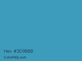 Hex #3d9bbb Color is a normal blue color and the nearest color is Boston Blue #3b91b4. Hex code #3d9bbb and RGB value is rgb(61,155,187). In RGB color space, this color is composed of 24% red, 61% green, 73% blue, In CMYK color space, this color is composed of 67% cyan, 17% magenta, 0% yellow , 27% black , In HSL color space, this color has a hue angle of 195° , 51% saturation and 49% lightness.