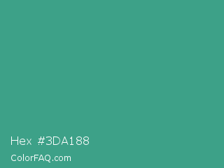 Hex #3da188 Color is a normal cyan color and the nearest color is Zomp #39a78e. Hex code #3da188 and RGB value is rgb(61,161,136). In RGB color space, this color is composed of 24% red, 63% green, 53% blue, In CMYK color space, this color is composed of 62% cyan, 0% magenta, 16% yellow , 37% black , In HSL color space, this color has a hue angle of 165° , 45% saturation and 44% lightness.