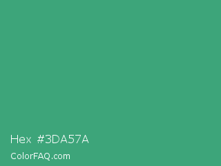Hex #3da57a Color is a normal green color and the nearest color is Ocean Green #41aa78. Hex code #3da57a and RGB value is rgb(61,165,122). In RGB color space, this color is composed of 24% red, 65% green, 48% blue, In CMYK color space, this color is composed of 63% cyan, 0% magenta, 26% yellow , 35% black , In HSL color space, this color has a hue angle of 155° , 46% saturation and 44% lightness.