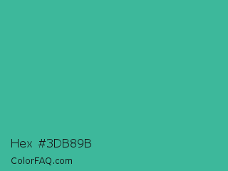 Hex #3db89b Color is a normal cyan color and the nearest color is Keppel #3ab09e. Hex code #3db89b and RGB value is rgb(61,184,155). In RGB color space, this color is composed of 24% red, 72% green, 61% blue, In CMYK color space, this color is composed of 67% cyan, 0% magenta, 16% yellow , 28% black , In HSL color space, this color has a hue angle of 166° , 50% saturation and 48% lightness.