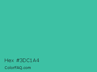 Hex #3dc1a4 Color is a normal cyan color and the nearest color is Puerto Rico #3fc1aa. Hex code #3dc1a4 and RGB value is rgb(61,193,164). In RGB color space, this color is composed of 24% red, 76% green, 64% blue, In CMYK color space, this color is composed of 68% cyan, 0% magenta, 15% yellow , 24% black , In HSL color space, this color has a hue angle of 167° , 52% saturation and 50% lightness.