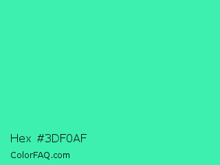 Hex #3df0af Color is a normal green color and the nearest color is Eucalyptus #44d7a8. Hex code #3df0af and RGB value is rgb(61,240,175). In RGB color space, this color is composed of 24% red, 94% green, 69% blue, In CMYK color space, this color is composed of 75% cyan, 0% magenta, 27% yellow , 6% black , In HSL color space, this color has a hue angle of 158° , 86% saturation and 59% lightness.
