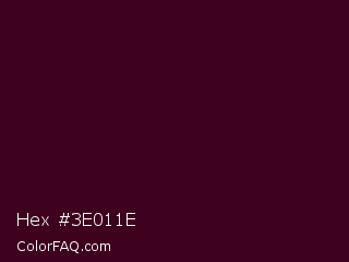 Hex #3e011e Color is a very dark rose color and the nearest color is Toledo #3a0020. Hex code #3e011e and RGB value is rgb(62,1,30). In RGB color space, this color is composed of 24% red, 0% green, 12% blue, In CMYK color space, this color is composed of 0% cyan, 98% magenta, 52% yellow , 76% black , In HSL color space, this color has a hue angle of 331° , 97% saturation and 12% lightness.