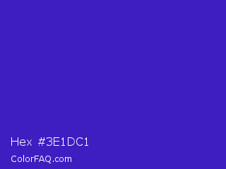 Hex #3e1dc1 Color is a normal indigo color and the nearest color is Interdimensional Blue #360ccc. Hex code #3e1dc1 and RGB value is rgb(62,29,193). In RGB color space, this color is composed of 24% red, 11% green, 76% blue, In CMYK color space, this color is composed of 68% cyan, 85% magenta, 0% yellow , 24% black , In HSL color space, this color has a hue angle of 252° , 74% saturation and 44% lightness.