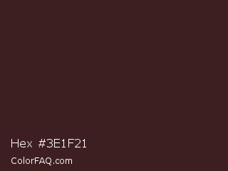 Hex #3e1f21 Color is a very dark red color and the nearest color is Jon #3b1f1f. Hex code #3e1f21 and RGB value is rgb(62,31,33). In RGB color space, this color is composed of 24% red, 12% green, 13% blue, In CMYK color space, this color is composed of 0% cyan, 50% magenta, 47% yellow , 76% black , In HSL color space, this color has a hue angle of 356° , 33% saturation and 18% lightness.