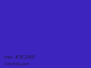 Hex #3e24bf Color is a normal indigo color and the nearest color is Interdimensional Blue #360ccc. Hex code #3e24bf and RGB value is rgb(62,36,191). In RGB color space, this color is composed of 24% red, 14% green, 75% blue, In CMYK color space, this color is composed of 68% cyan, 81% magenta, 0% yellow , 25% black , In HSL color space, this color has a hue angle of 250° , 68% saturation and 45% lightness.