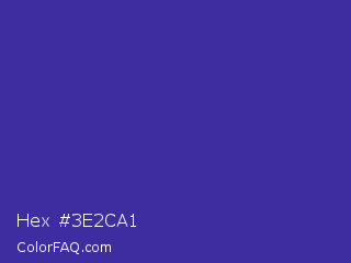 Hex #3e2ca1 Color is a normal indigo color and the nearest color is Blue Pigment #333399. Hex code #3e2ca1 and RGB value is rgb(62,44,161). In RGB color space, this color is composed of 24% red, 17% green, 63% blue, In CMYK color space, this color is composed of 61% cyan, 73% magenta, 0% yellow , 37% black , In HSL color space, this color has a hue angle of 249° , 57% saturation and 40% lightness.
