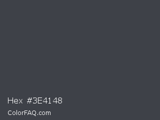 Hex #3e4148 Color is a dark blue color and the nearest color is Arsenic #3b444b. Hex code #3e4148 and RGB value is rgb(62,65,72). In RGB color space, this color is composed of 24% red, 25% green, 28% blue, In CMYK color space, this color is composed of 14% cyan, 10% magenta, 0% yellow , 72% black , In HSL color space, this color has a hue angle of 222° , 7% saturation and 26% lightness.