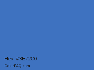 Hex #3e72c0 Color is a normal blue color and the nearest color is Han Blue #446ccf. Hex code #3e72c0 and RGB value is rgb(62,114,192). In RGB color space, this color is composed of 24% red, 45% green, 75% blue, In CMYK color space, this color is composed of 68% cyan, 41% magenta, 0% yellow , 25% black , In HSL color space, this color has a hue angle of 216° , 51% saturation and 50% lightness.