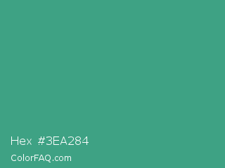 Hex #3ea284 Color is a normal green color and the nearest color is Zomp #39a78e. Hex code #3ea284 and RGB value is rgb(62,162,132). In RGB color space, this color is composed of 24% red, 64% green, 52% blue, In CMYK color space, this color is composed of 62% cyan, 0% magenta, 19% yellow , 36% black , In HSL color space, this color has a hue angle of 162° , 45% saturation and 44% lightness.