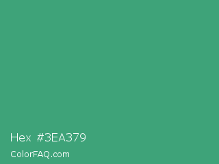 Hex #3ea379 Color is a normal green color and the nearest color is Ocean Green #41aa78. Hex code #3ea379 and RGB value is rgb(62,163,121). In RGB color space, this color is composed of 24% red, 64% green, 47% blue, In CMYK color space, this color is composed of 62% cyan, 0% magenta, 26% yellow , 36% black , In HSL color space, this color has a hue angle of 155° , 45% saturation and 44% lightness.