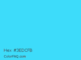 Hex #3edcfb Color is a light cyan color and the nearest color is Turquoise #40e0d0. Hex code #3edcfb and RGB value is rgb(62,220,251). In RGB color space, this color is composed of 24% red, 86% green, 98% blue, In CMYK color space, this color is composed of 75% cyan, 12% magenta, 0% yellow , 2% black , In HSL color space, this color has a hue angle of 190° , 96% saturation and 61% lightness.