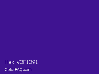 Hex #3f1391 Color is a normal violet color and the nearest color is Pixie Powder #391285. Hex code #3f1391 and RGB value is rgb(63,19,145). In RGB color space, this color is composed of 25% red, 7% green, 57% blue, In CMYK color space, this color is composed of 57% cyan, 87% magenta, 0% yellow , 43% black , In HSL color space, this color has a hue angle of 261° , 77% saturation and 32% lightness.