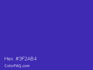 Hex #3f2ab4 Color is a normal indigo color and the nearest color is Governor Bay #2f3cb3. Hex code #3f2ab4 and RGB value is rgb(63,42,180). In RGB color space, this color is composed of 25% red, 16% green, 71% blue, In CMYK color space, this color is composed of 65% cyan, 77% magenta, 0% yellow , 29% black , In HSL color space, this color has a hue angle of 249° , 62% saturation and 44% lightness.