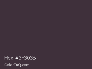 Hex #3f303b Color is a very dark magenta color and the nearest color is Masala #403b38. Hex code #3f303b and RGB value is rgb(63,48,59). In RGB color space, this color is composed of 25% red, 19% green, 23% blue, In CMYK color space, this color is composed of 0% cyan, 24% magenta, 6% yellow , 75% black , In HSL color space, this color has a hue angle of 316° , 14% saturation and 22% lightness.