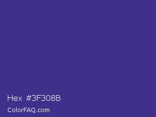 Hex #3f308b Color is a normal indigo color and the nearest color is Minsk #3f307f. Hex code #3f308b and RGB value is rgb(63,48,139). In RGB color space, this color is composed of 25% red, 19% green, 55% blue, In CMYK color space, this color is composed of 55% cyan, 65% magenta, 0% yellow , 45% black , In HSL color space, this color has a hue angle of 250° , 49% saturation and 37% lightness.
