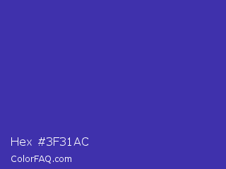 Hex #3f31ac Color is a normal indigo color and the nearest color is Governor Bay #2f3cb3. Hex code #3f31ac and RGB value is rgb(63,49,172). In RGB color space, this color is composed of 25% red, 19% green, 67% blue, In CMYK color space, this color is composed of 63% cyan, 72% magenta, 0% yellow , 33% black , In HSL color space, this color has a hue angle of 247° , 56% saturation and 43% lightness.