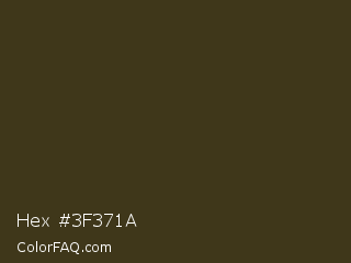 Hex #3f371a Color is a very dark yellow color and the nearest color is Pullman Green #3b331c. Hex code #3f371a and RGB value is rgb(63,55,26). In RGB color space, this color is composed of 25% red, 22% green, 10% blue, In CMYK color space, this color is composed of 0% cyan, 13% magenta, 59% yellow , 75% black , In HSL color space, this color has a hue angle of 47° , 42% saturation and 17% lightness.