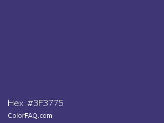 Hex #3f3775 Color is a normal indigo color and the nearest color is Minsk #3f307f. Hex code #3f3775 and RGB value is rgb(63,55,117). In RGB color space, this color is composed of 25% red, 22% green, 46% blue, In CMYK color space, this color is composed of 46% cyan, 53% magenta, 0% yellow , 54% black , In HSL color space, this color has a hue angle of 248° , 36% saturation and 34% lightness.
