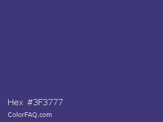 Hex #3f3777 Color is a normal indigo color and the nearest color is Minsk #3f307f. Hex code #3f3777 and RGB value is rgb(63,55,119). In RGB color space, this color is composed of 25% red, 22% green, 47% blue, In CMYK color space, this color is composed of 47% cyan, 54% magenta, 0% yellow , 53% black , In HSL color space, this color has a hue angle of 248° , 37% saturation and 34% lightness.