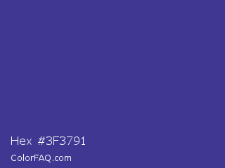 Hex #3f3791 Color is a normal indigo color and the nearest color is Dark Slate Blue #483d8b. Hex code #3f3791 and RGB value is rgb(63,55,145). In RGB color space, this color is composed of 25% red, 22% green, 57% blue, In CMYK color space, this color is composed of 57% cyan, 62% magenta, 0% yellow , 43% black , In HSL color space, this color has a hue angle of 245° , 45% saturation and 39% lightness.
