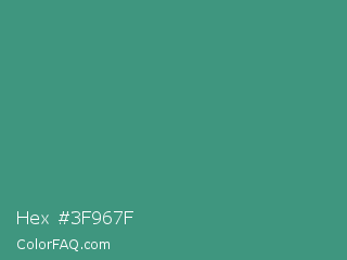 Hex #3f967f Color is a normal cyan color and the nearest color is Illuminating Emerald #319177. Hex code #3f967f and RGB value is rgb(63,150,127). In RGB color space, this color is composed of 25% red, 59% green, 50% blue, In CMYK color space, this color is composed of 58% cyan, 0% magenta, 15% yellow , 41% black , In HSL color space, this color has a hue angle of 164° , 41% saturation and 42% lightness.