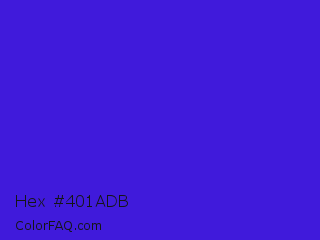 Hex #401adb Color is a normal indigo color and the nearest color is Interdimensional Blue #360ccc. Hex code #401adb and RGB value is rgb(64,26,219). In RGB color space, this color is composed of 25% red, 10% green, 86% blue, In CMYK color space, this color is composed of 71% cyan, 88% magenta, 0% yellow , 14% black , In HSL color space, this color has a hue angle of 252° , 79% saturation and 48% lightness.