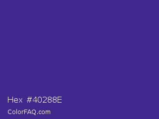 Hex #40288e Color is a normal indigo color and the nearest color is Spanish Violet #4c2882. Hex code #40288e and RGB value is rgb(64,40,142). In RGB color space, this color is composed of 25% red, 16% green, 56% blue, In CMYK color space, this color is composed of 55% cyan, 72% magenta, 0% yellow , 44% black , In HSL color space, this color has a hue angle of 254° , 56% saturation and 36% lightness.