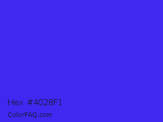 Hex #4028f1 Color is a normal indigo color and the nearest color is Han Purple #5218fa. Hex code #4028f1 and RGB value is rgb(64,40,241). In RGB color space, this color is composed of 25% red, 16% green, 95% blue, In CMYK color space, this color is composed of 73% cyan, 83% magenta, 0% yellow , 5% black , In HSL color space, this color has a hue angle of 247° , 88% saturation and 55% lightness.
