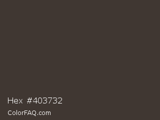 Hex #403732 Color is a very dark orange color and the nearest color is Merlin #413c37. Hex code #403732 and RGB value is rgb(64,55,50). In RGB color space, this color is composed of 25% red, 22% green, 20% blue, In CMYK color space, this color is composed of 0% cyan, 14% magenta, 22% yellow , 75% black , In HSL color space, this color has a hue angle of 21° , 12% saturation and 22% lightness.