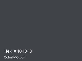 Hex #404348 Color is a dark blue color and the nearest color is Arsenic #3b444b. Hex code #404348 and RGB value is rgb(64,67,72). In RGB color space, this color is composed of 25% red, 26% green, 28% blue, In CMYK color space, this color is composed of 11% cyan, 7% magenta, 0% yellow , 72% black , In HSL color space, this color has a hue angle of 218° , 6% saturation and 27% lightness.