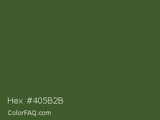 Hex #405b2b Color is a dark green color and the nearest color is Dark Moss Green #4a5d23. Hex code #405b2b and RGB value is rgb(64,91,43). In RGB color space, this color is composed of 25% red, 36% green, 17% blue, In CMYK color space, this color is composed of 30% cyan, 0% magenta, 53% yellow , 64% black , In HSL color space, this color has a hue angle of 94° , 36% saturation and 26% lightness.