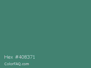 Hex #408371 Color is a normal cyan color and the nearest color is Viridian #40826d. Hex code #408371 and RGB value is rgb(64,131,113). In RGB color space, this color is composed of 25% red, 51% green, 44% blue, In CMYK color space, this color is composed of 51% cyan, 0% magenta, 14% yellow , 49% black , In HSL color space, this color has a hue angle of 164° , 34% saturation and 38% lightness.