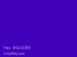Hex #4101b9 Color is a normal violet color and the nearest color is Interdimensional Blue #360ccc. Hex code #4101b9 and RGB value is rgb(65,1,185). In RGB color space, this color is composed of 25% red, 0% green, 73% blue, In CMYK color space, this color is composed of 65% cyan, 99% magenta, 0% yellow , 27% black , In HSL color space, this color has a hue angle of 261° , 99% saturation and 36% lightness.