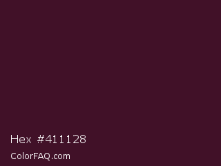 Hex #411128 Color is a very dark rose color and the nearest color is Barossa #44012d. Hex code #411128 and RGB value is rgb(65,17,40). In RGB color space, this color is composed of 25% red, 7% green, 16% blue, In CMYK color space, this color is composed of 0% cyan, 74% magenta, 38% yellow , 75% black , In HSL color space, this color has a hue angle of 331° , 59% saturation and 16% lightness.