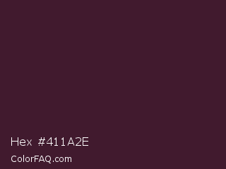 Hex #411a2e Color is a very dark rose color and the nearest color is Crater Brown #462425. Hex code #411a2e and RGB value is rgb(65,26,46). In RGB color space, this color is composed of 25% red, 10% green, 18% blue, In CMYK color space, this color is composed of 0% cyan, 60% magenta, 29% yellow , 75% black , In HSL color space, this color has a hue angle of 329° , 43% saturation and 18% lightness.