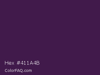 Hex #411a4b Color is a very dark purple color and the nearest color is Deep Grape #381a51. Hex code #411a4b and RGB value is rgb(65,26,75). In RGB color space, this color is composed of 25% red, 10% green, 29% blue, In CMYK color space, this color is composed of 13% cyan, 65% magenta, 0% yellow , 71% black , In HSL color space, this color has a hue angle of 288° , 49% saturation and 20% lightness.