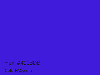 Hex #411bdb Color is a normal indigo color and the nearest color is Interdimensional Blue #360ccc. Hex code #411bdb and RGB value is rgb(65,27,219). In RGB color space, this color is composed of 25% red, 11% green, 86% blue, In CMYK color space, this color is composed of 70% cyan, 88% magenta, 0% yellow , 14% black , In HSL color space, this color has a hue angle of 252° , 78% saturation and 48% lightness.