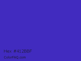 Hex #412bbf Color is a normal indigo color and the nearest color is Governor Bay #2f3cb3. Hex code #412bbf and RGB value is rgb(65,43,191). In RGB color space, this color is composed of 25% red, 17% green, 75% blue, In CMYK color space, this color is composed of 66% cyan, 77% magenta, 0% yellow , 25% black , In HSL color space, this color has a hue angle of 249° , 63% saturation and 46% lightness.