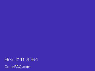 Hex #412db4 Color is a normal indigo color and the nearest color is Governor Bay #2f3cb3. Hex code #412db4 and RGB value is rgb(65,45,180). In RGB color space, this color is composed of 25% red, 18% green, 71% blue, In CMYK color space, this color is composed of 64% cyan, 75% magenta, 0% yellow , 29% black , In HSL color space, this color has a hue angle of 249° , 60% saturation and 44% lightness.