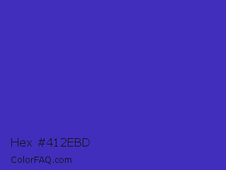 Hex #412ebd Color is a normal indigo color and the nearest color is Governor Bay #2f3cb3. Hex code #412ebd and RGB value is rgb(65,46,189). In RGB color space, this color is composed of 25% red, 18% green, 74% blue, In CMYK color space, this color is composed of 66% cyan, 76% magenta, 0% yellow , 26% black , In HSL color space, this color has a hue angle of 248° , 61% saturation and 46% lightness.