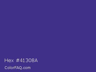 Hex #41308a Color is a normal indigo color and the nearest color is Minsk #3f307f. Hex code #41308a and RGB value is rgb(65,48,138). In RGB color space, this color is composed of 25% red, 19% green, 54% blue, In CMYK color space, this color is composed of 53% cyan, 65% magenta, 0% yellow , 46% black , In HSL color space, this color has a hue angle of 251° , 48% saturation and 36% lightness.