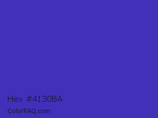 Hex #4130ba Color is a normal indigo color and the nearest color is Governor Bay #2f3cb3. Hex code #4130ba and RGB value is rgb(65,48,186). In RGB color space, this color is composed of 25% red, 19% green, 73% blue, In CMYK color space, this color is composed of 65% cyan, 74% magenta, 0% yellow , 27% black , In HSL color space, this color has a hue angle of 247° , 59% saturation and 46% lightness.
