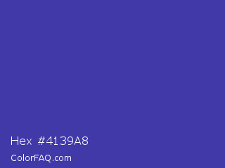Hex #4139a8 Color is a normal indigo color and the nearest color is Ocean Blue #4f42b5. Hex code #4139a8 and RGB value is rgb(65,57,168). In RGB color space, this color is composed of 25% red, 22% green, 66% blue, In CMYK color space, this color is composed of 61% cyan, 66% magenta, 0% yellow , 34% black , In HSL color space, this color has a hue angle of 244° , 49% saturation and 44% lightness.