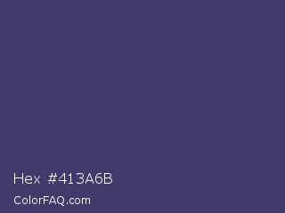 Hex #413a6b Color is a normal indigo color and the nearest color is Deep Koamaru #333366. Hex code #413a6b and RGB value is rgb(65,58,107). In RGB color space, this color is composed of 25% red, 23% green, 42% blue, In CMYK color space, this color is composed of 39% cyan, 46% magenta, 0% yellow , 58% black , In HSL color space, this color has a hue angle of 249° , 30% saturation and 32% lightness.