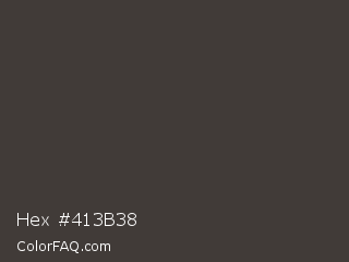 Hex #413b38 Color is a dark orange color and the nearest color is Masala #403b38. Hex code #413b38 and RGB value is rgb(65,59,56). In RGB color space, this color is composed of 25% red, 23% green, 22% blue, In CMYK color space, this color is composed of 0% cyan, 9% magenta, 14% yellow , 75% black , In HSL color space, this color has a hue angle of 20° , 7% saturation and 24% lightness.