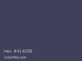 Hex #41405b Color is a dark indigo color and the nearest color is Gun Powder #414257. Hex code #41405b and RGB value is rgb(65,64,91). In RGB color space, this color is composed of 25% red, 25% green, 36% blue, In CMYK color space, this color is composed of 29% cyan, 30% magenta, 0% yellow , 64% black , In HSL color space, this color has a hue angle of 242° , 17% saturation and 30% lightness.