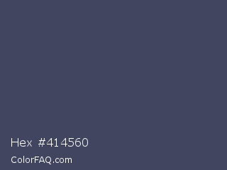 Hex #414560 Color is a normal blue color and the nearest color is Gun Powder #414257. Hex code #414560 and RGB value is rgb(65,69,96). In RGB color space, this color is composed of 25% red, 27% green, 38% blue, In CMYK color space, this color is composed of 32% cyan, 28% magenta, 0% yellow , 62% black , In HSL color space, this color has a hue angle of 232° , 19% saturation and 32% lightness.